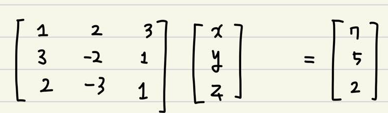 (3개 원소로 이루어진 1차식의 연립방정식을 뜻합니다.)