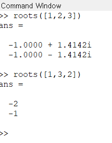 그리고 roots()의 괄호 안에 행렬의 이름을 넣었습니다.