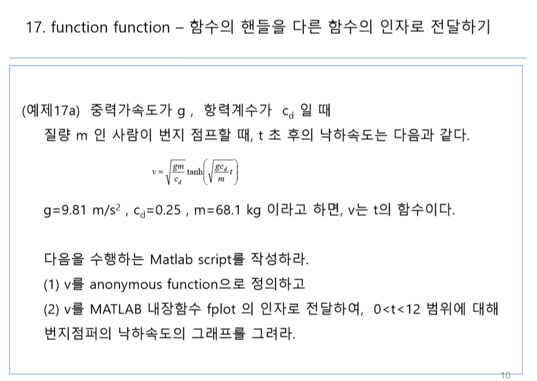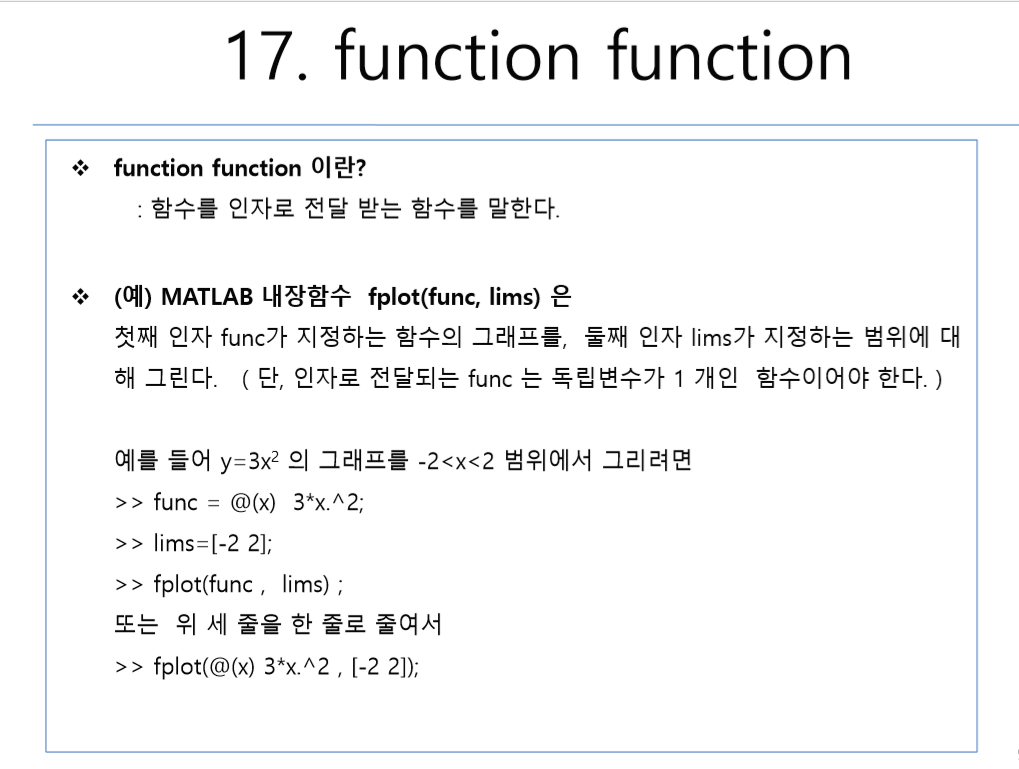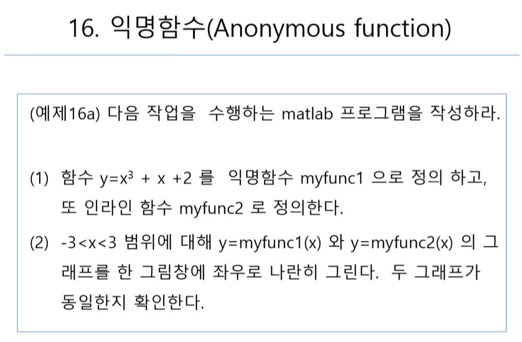 이런 function function을 사용하려면 익명 함수를 이용해서 함수의 핸들을 만들어 주어야 합니다.
