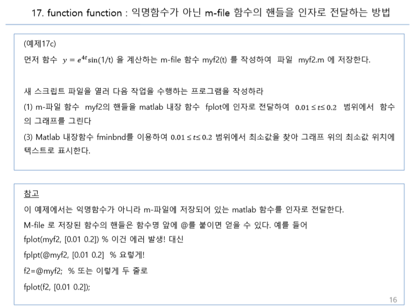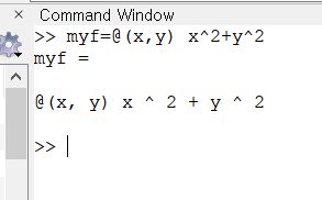 ※익명 함수일 때는 핸들 이름이 그냥 붙어있었는데 m파일일 때는 함수 앞에 @를 붙여야 핸들이 됩니다 ,
