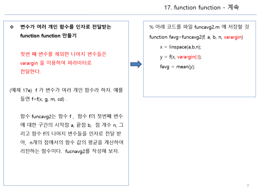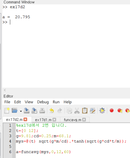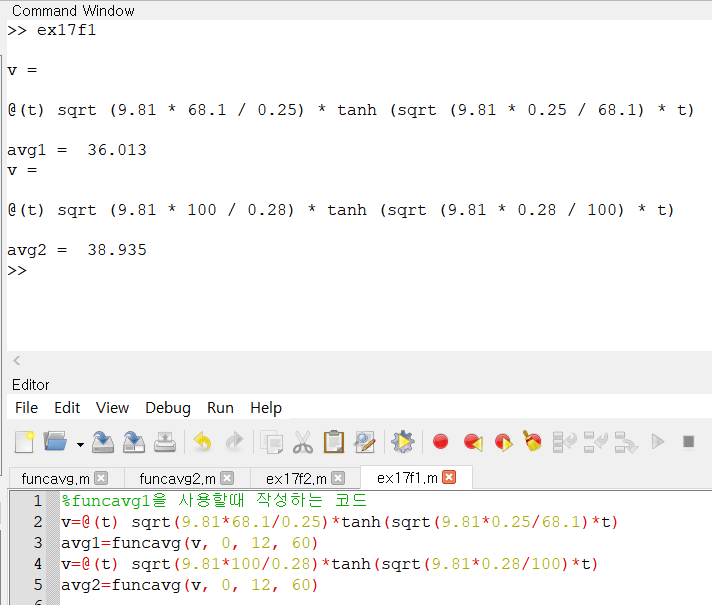 funcavg1를 사용할때 작성하는 코드의 m파일명을 ex17f1이라고 하였습니다.