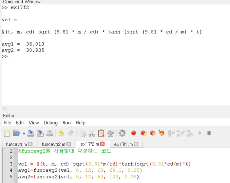 funcavg2를 사용할때 작성하는 코드의 m파일명을 ex17f2라고 하였습니다.