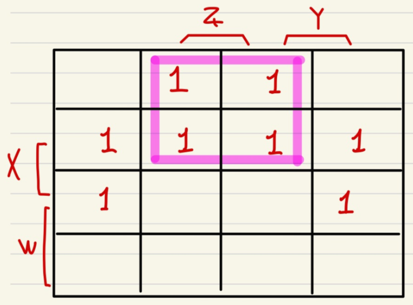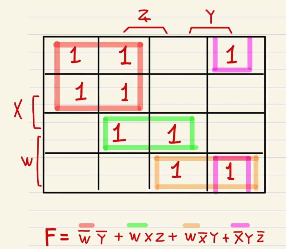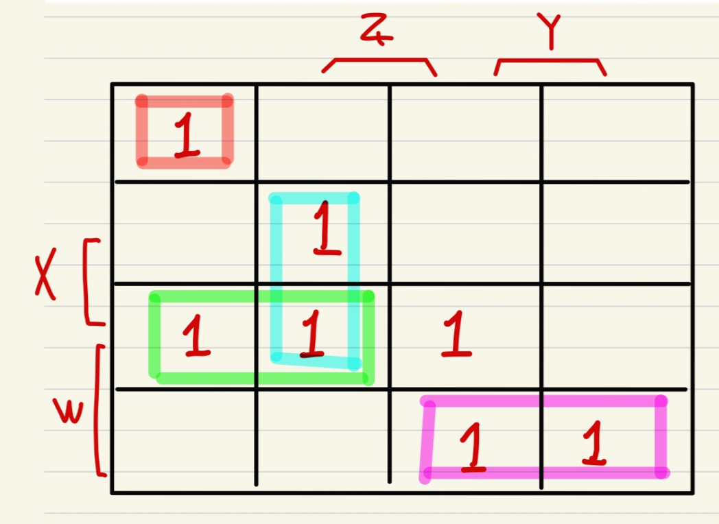 카르노 맵에서 네모칸은 1,2,4,8개로 묶었습니다.