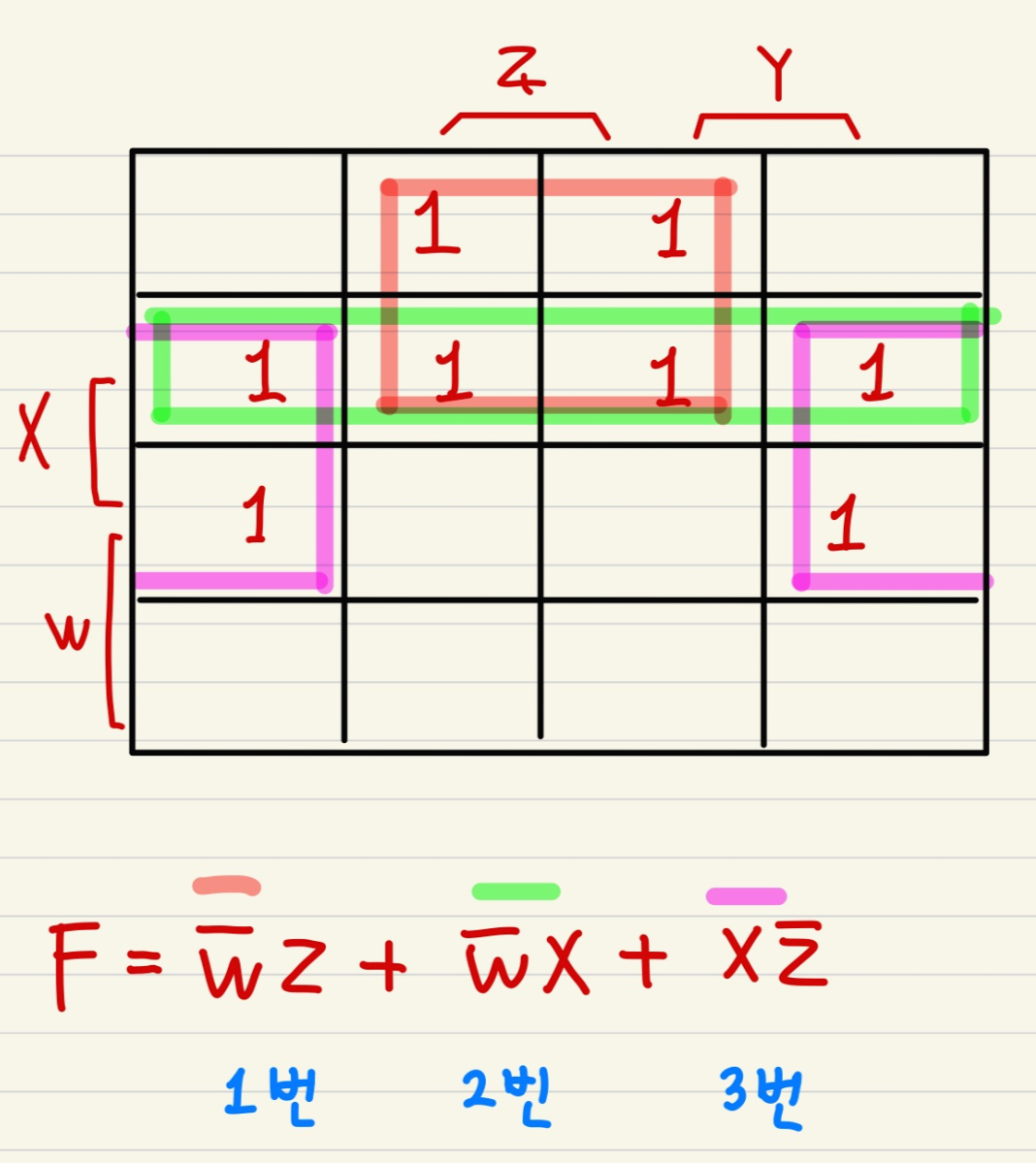 F대로 카르노 맵을 다시그려보면 다음과 같습니다.