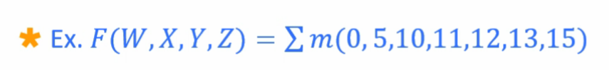 입력은 WXYZ이고 출력은 F인 논리 함수가 있습니다.