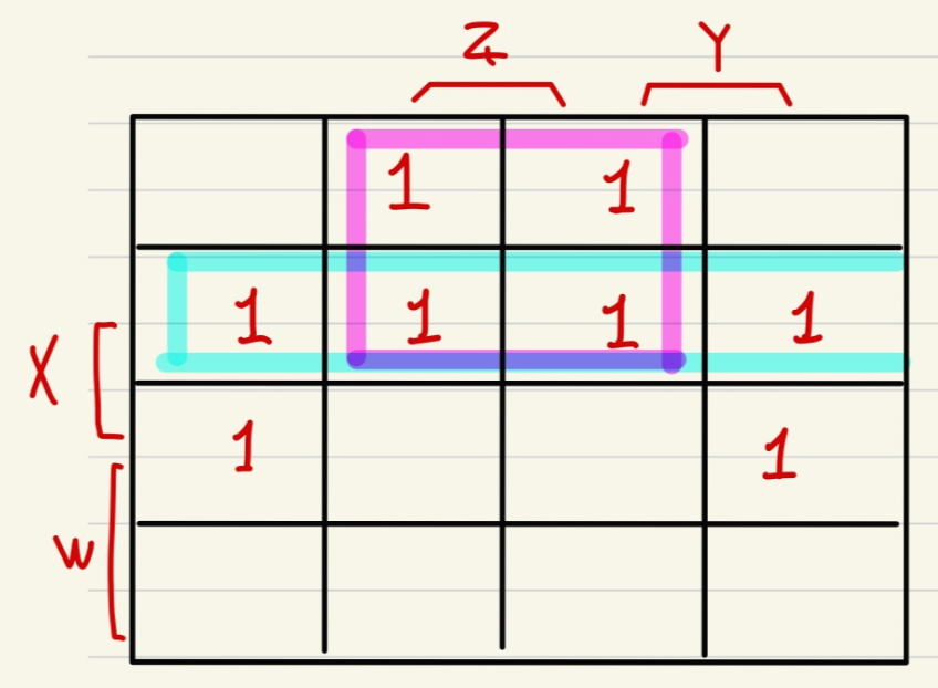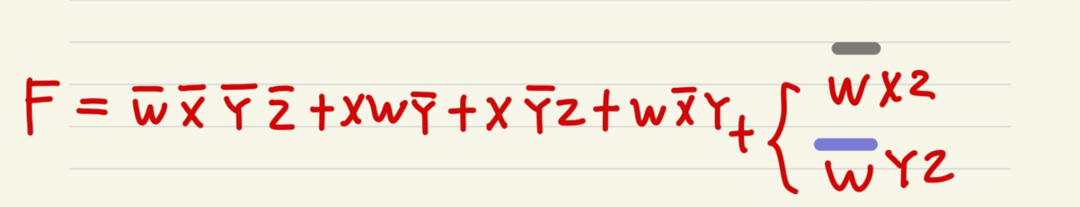 이유: 위 논리 함수에서 필요 없는 항이 있다.