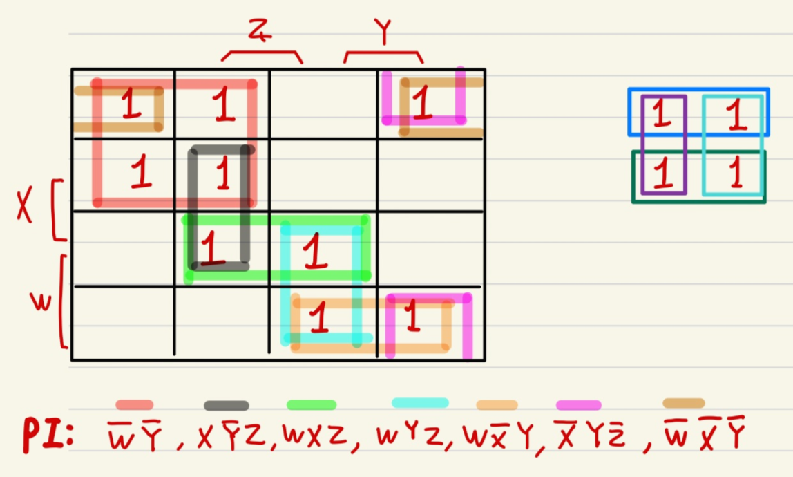 모든 1이 네모칸에 다 포함되었으므로 더 이상 PI를 찾을 필요가 없습니다.
