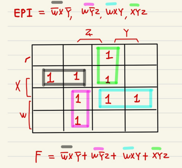 위의 EPI대로 카르노맵을 그리면 아래와 같습니다.