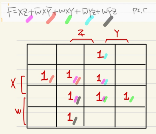F= XZ + /W X /Y + WXY+ W/YZ PI를 찾고 EPI를 찾고 F를 최적화하라.