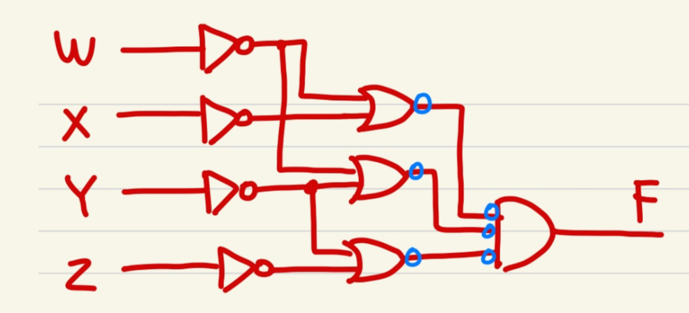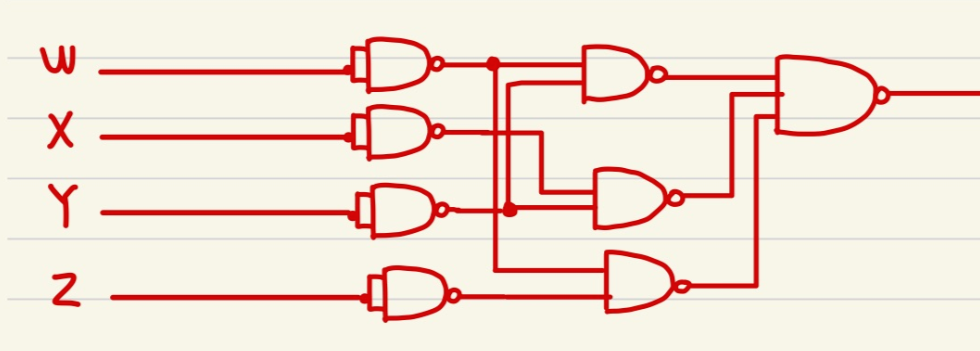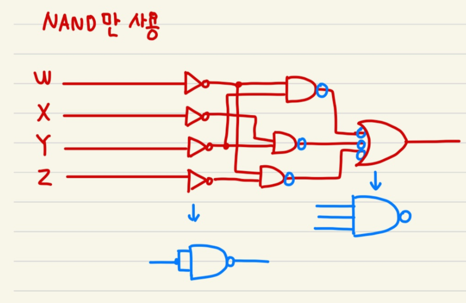 구한 논리함수로 일단 회로를 구현하면 다음과 같습니다.
