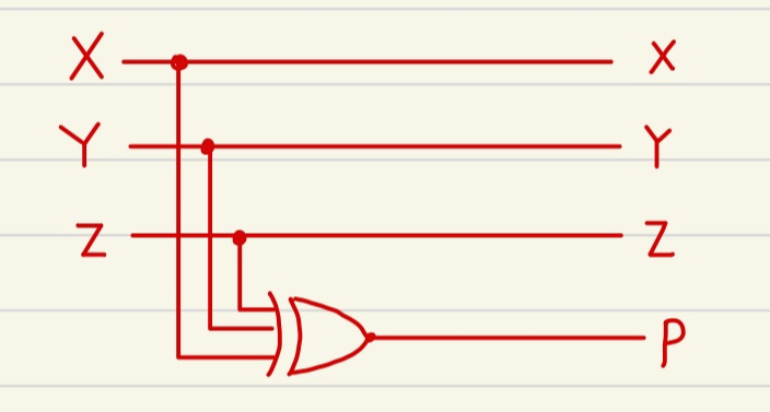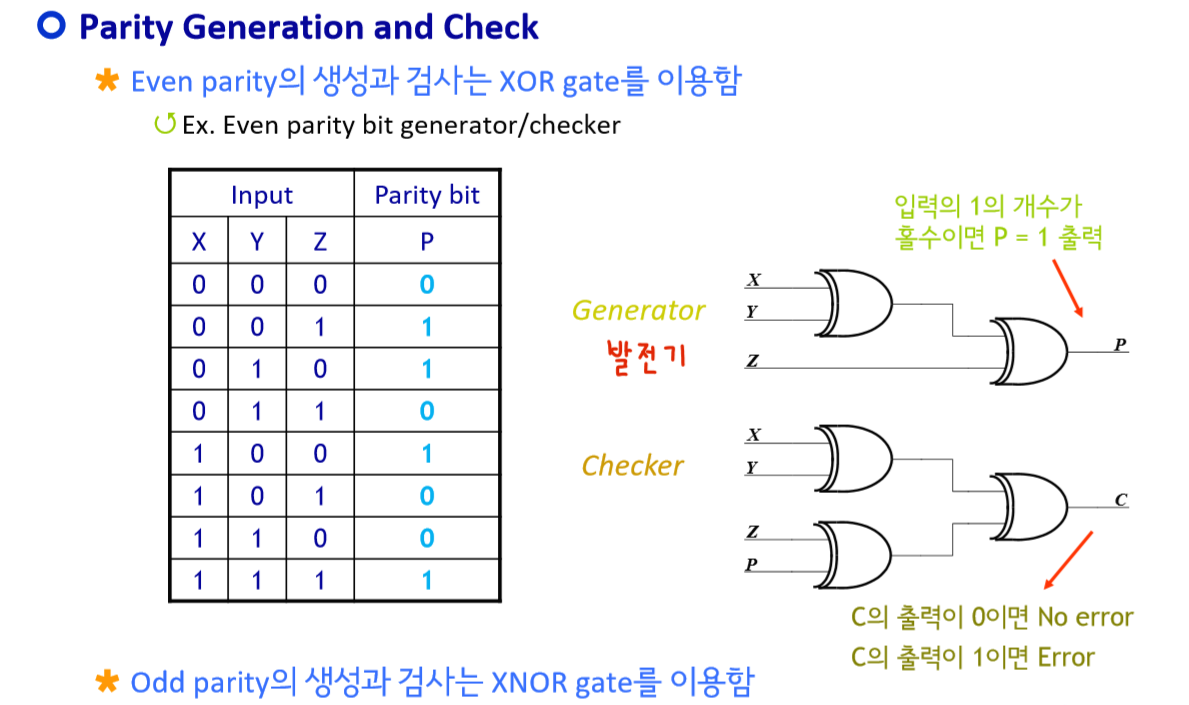이런식으로 EvenParity의 생성과 검산은 XOR게이트로 할 수 있습니다.