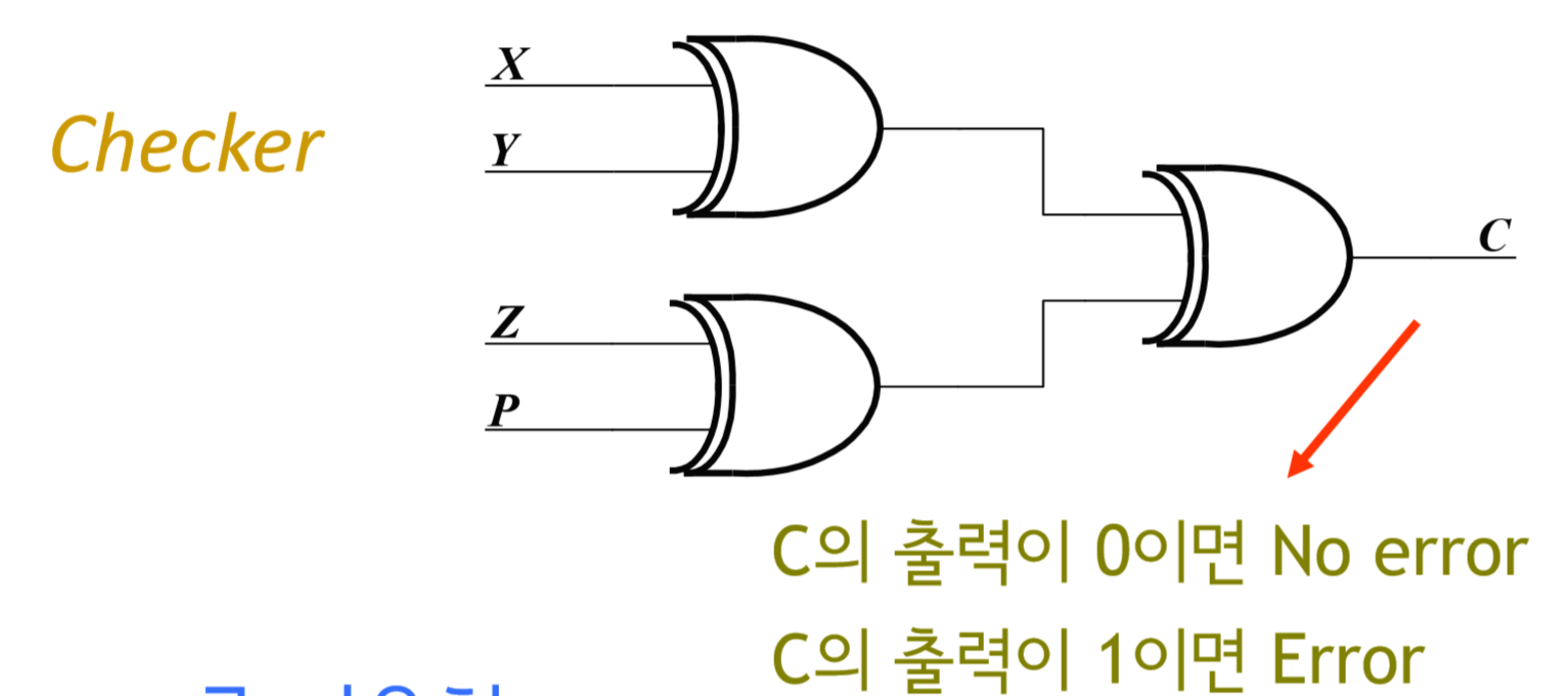 Q값이 1이면 XOR의 출력이 1이라는 것이므로 입력의 1의 개수가 홀수라는 이야기입니다. Error이 있다고 판단합니다.