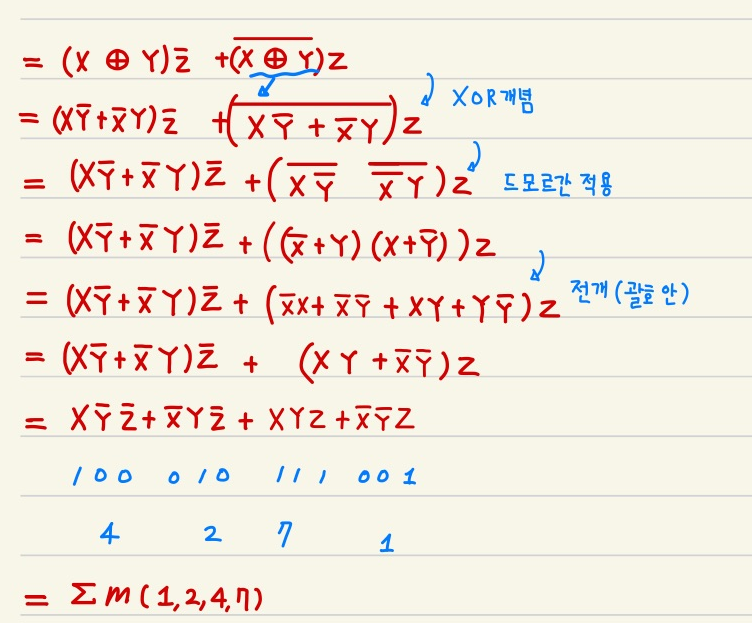 진리표에서 출력이 1인 부분의 입력을 작성하면 (>>SOP형태로 작성하면 됩니다.)