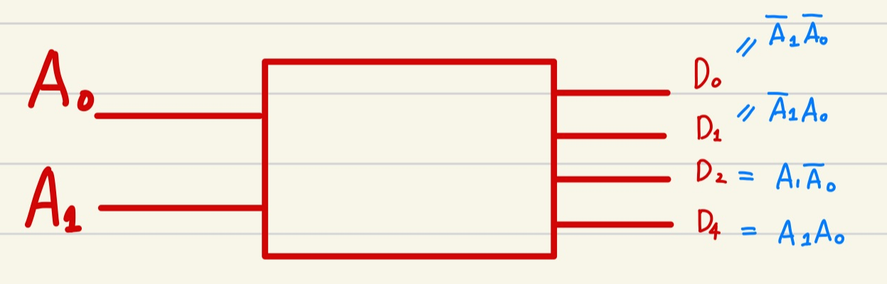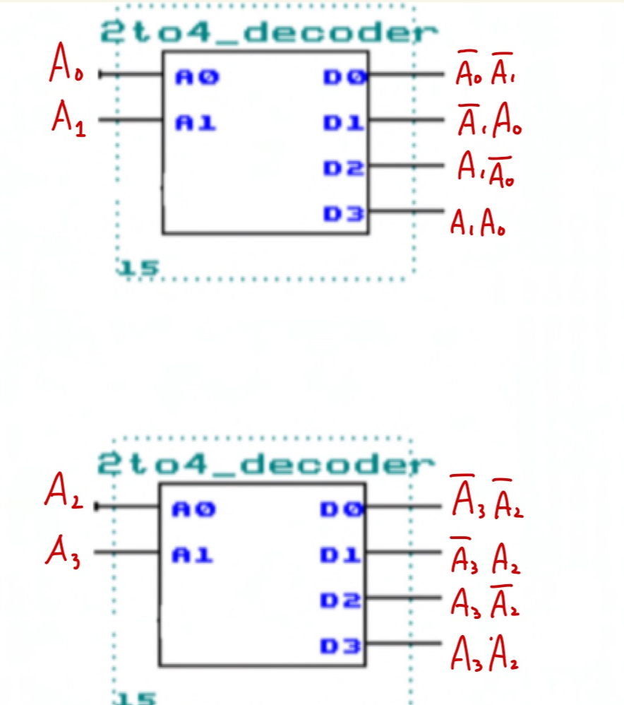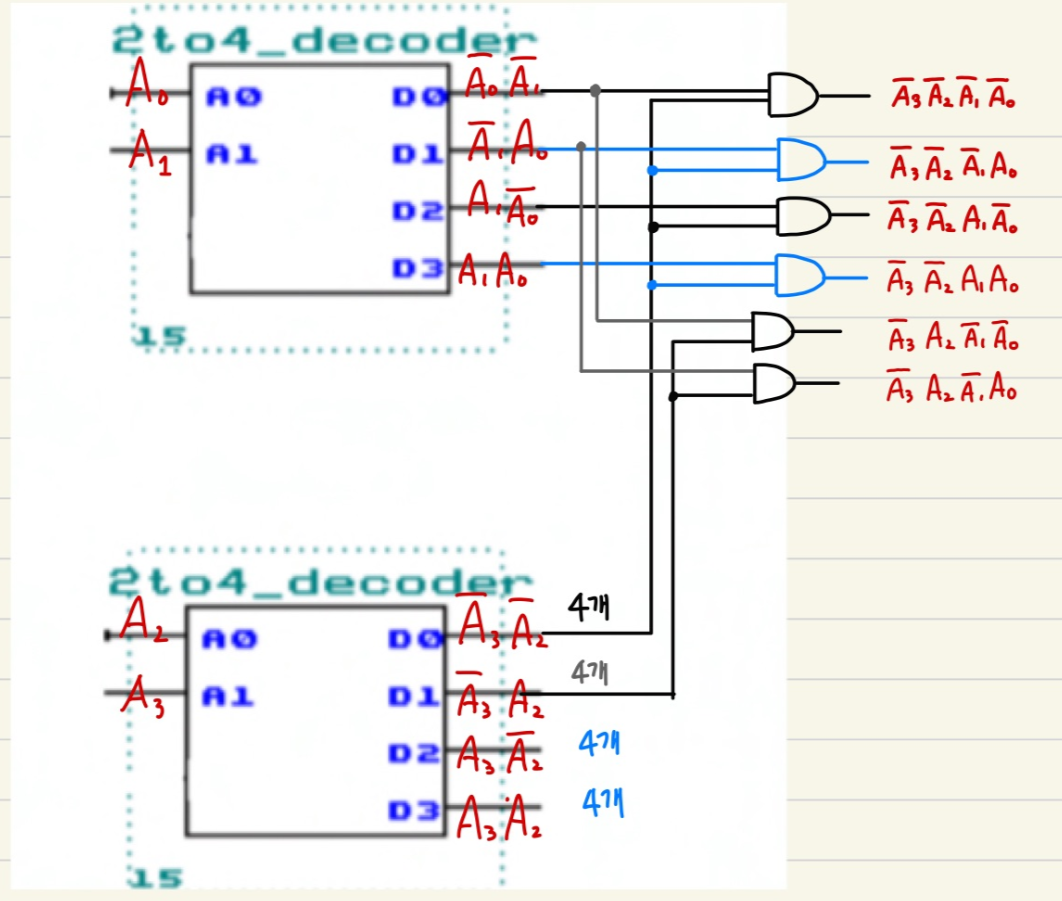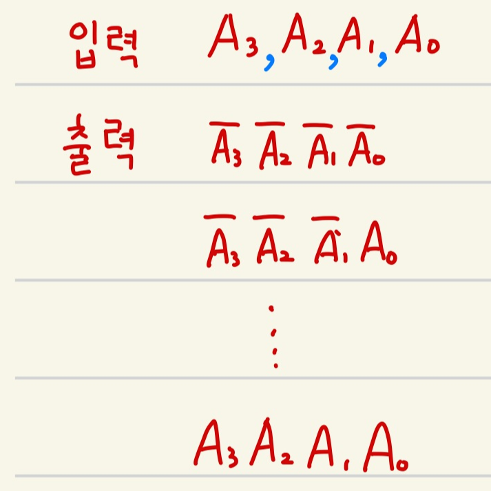 예를 들어 입력이 A0 A1 A2 A3로 4개가 된다면, 16개의 출력이 필요합니다.