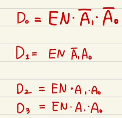여기서 만약 EN이 0이었다고 한다면,A1 A0에 상관없이 값이 0이든 1이든 상관없이, 하나가 0인것입니다.