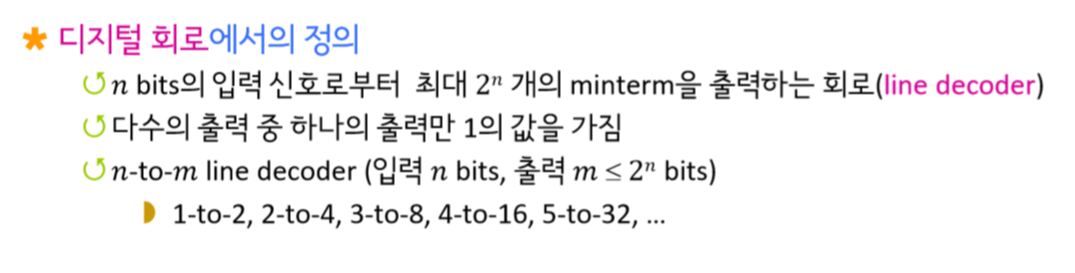 출력이 입력의 Minterm들일때 LineDecoder라고 합니다.