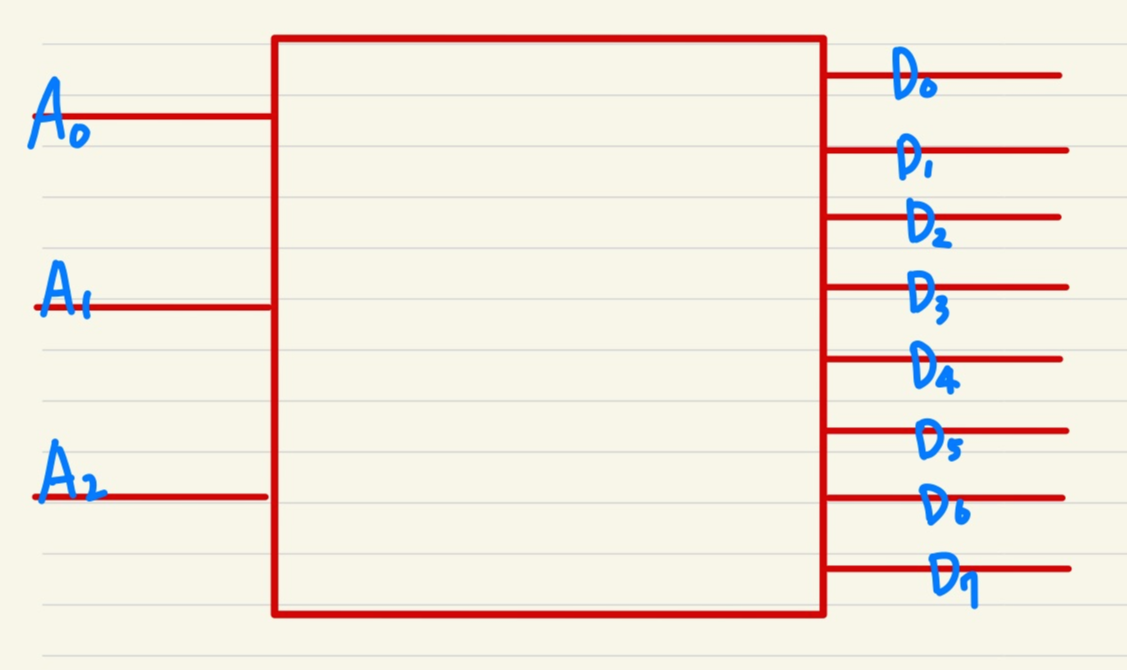 A0 A1 A2가 있고 회로의 출력이 8개가 되는 경우 입니다.