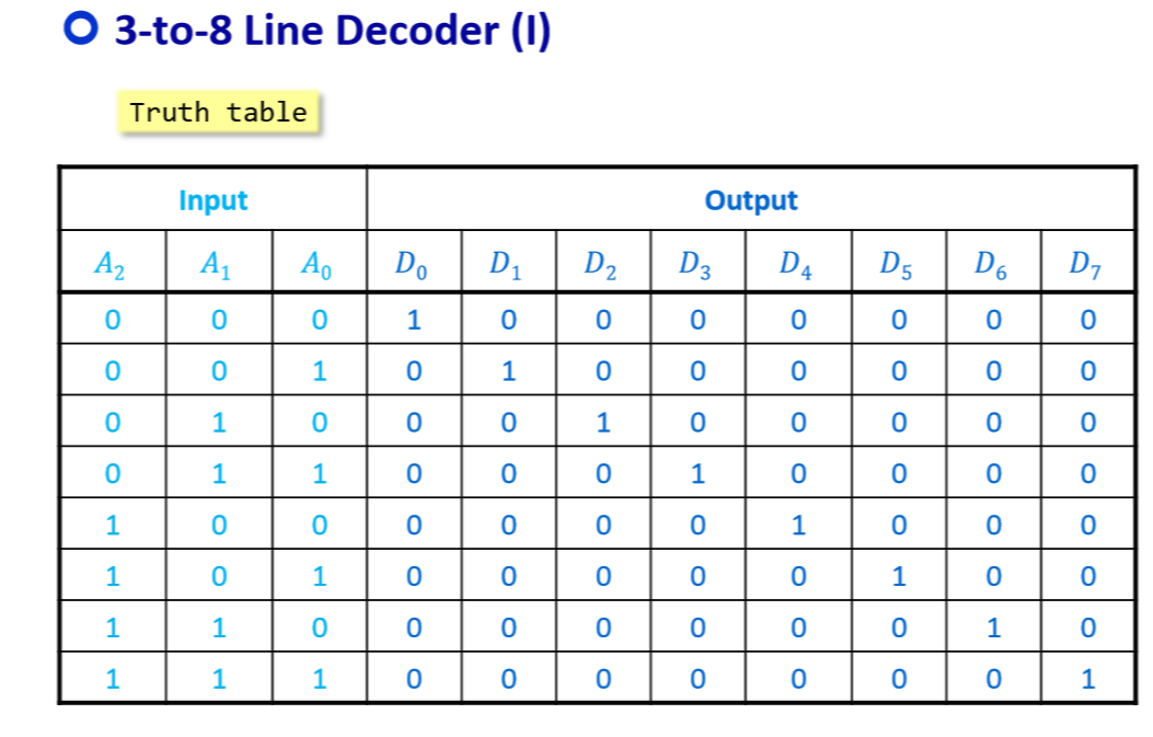 3-to-8 line decoder 라고 하면 (입력이 3개 출력이 8개)