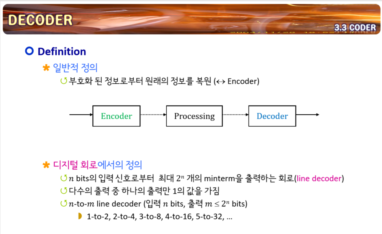 내가 공부한 논리회로 설계 24.(13_2.Coder_Line Decoder_Encoder)