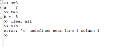 clear all을 했기 때문에 위에서 지정한 변수 a와 b는 초기화된 것이다.