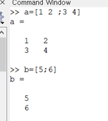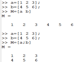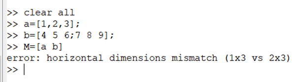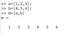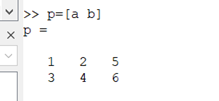 기존의 행렬 a와 추가하려는 행렬 b의 행이 서로 다름을 ;을 이용해 구분해주었습니다.