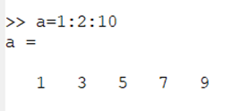 Q: 행렬 이름이 a이고 1부터 10까지 공차가 2인 수열을 표현하여라.