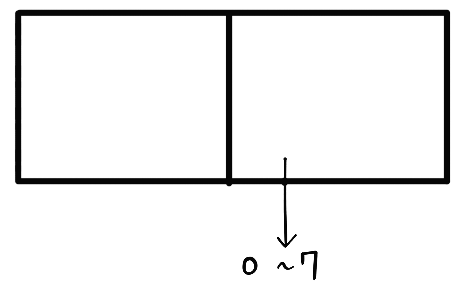 네모한칸에 최대로 채울 수 있는 숫자는 7이므로 십진수8을 팔진법으로 표현하려면 아래 그림과 같이 표현한다.