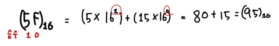 네모한칸에 최대로 채울 수 있는 숫자는 15(F)이므로 십진수16을 표현하려면 아래 그림과 같이 표현한다.