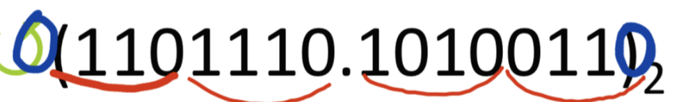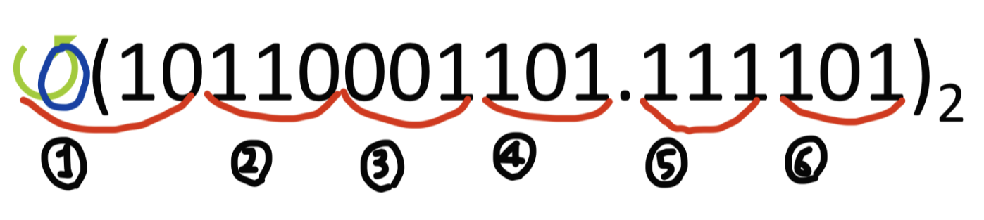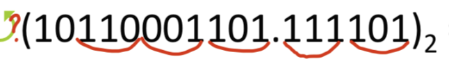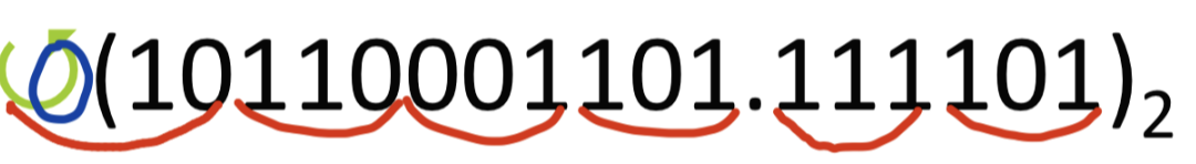 소수점이 있을 때는 소수점에 가장 가까운 숫자부터 시작해서 3bit씩 묶으면 됩니다.