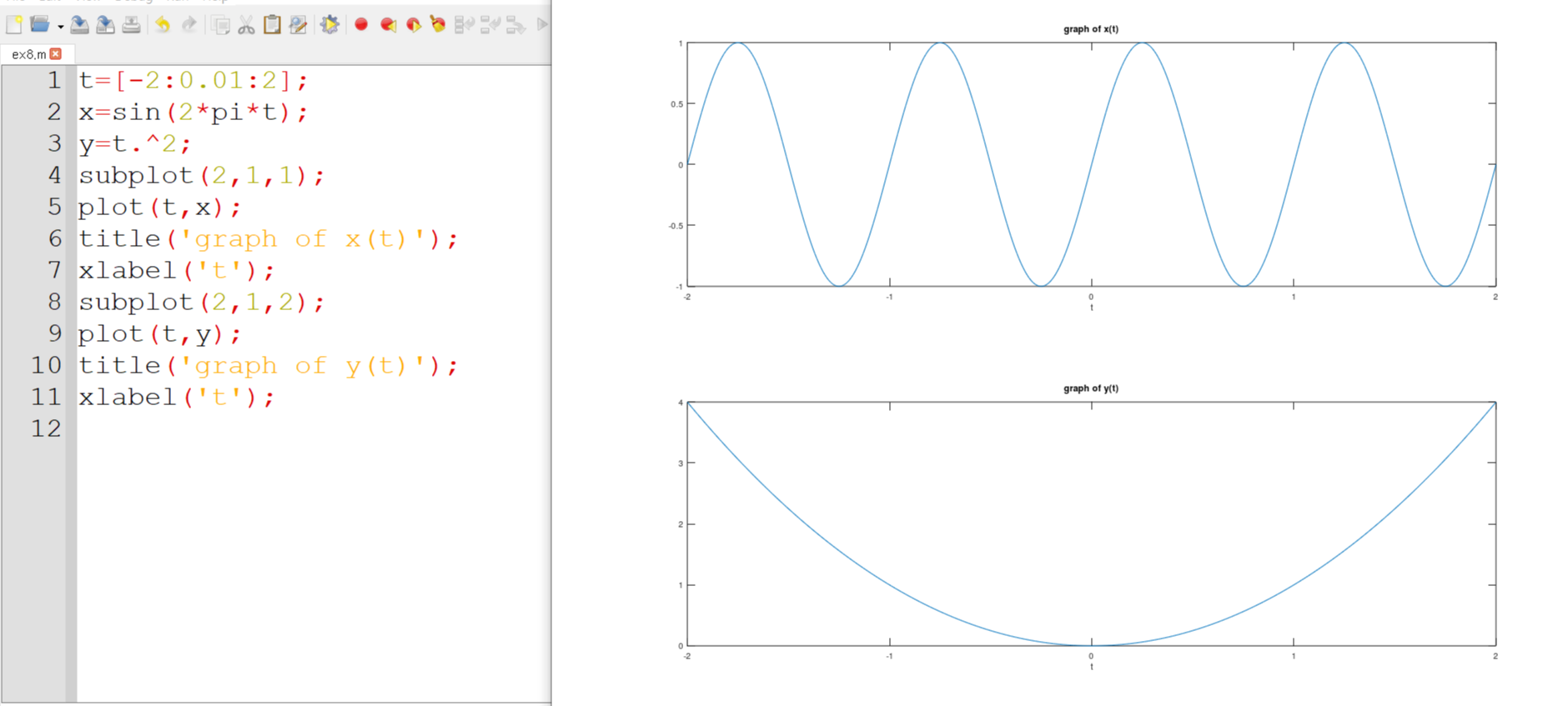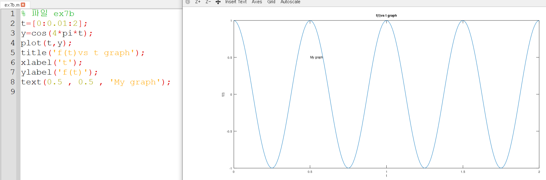 xlabel('t');%적절히 제목,라벨 붙이기,grid on시키기