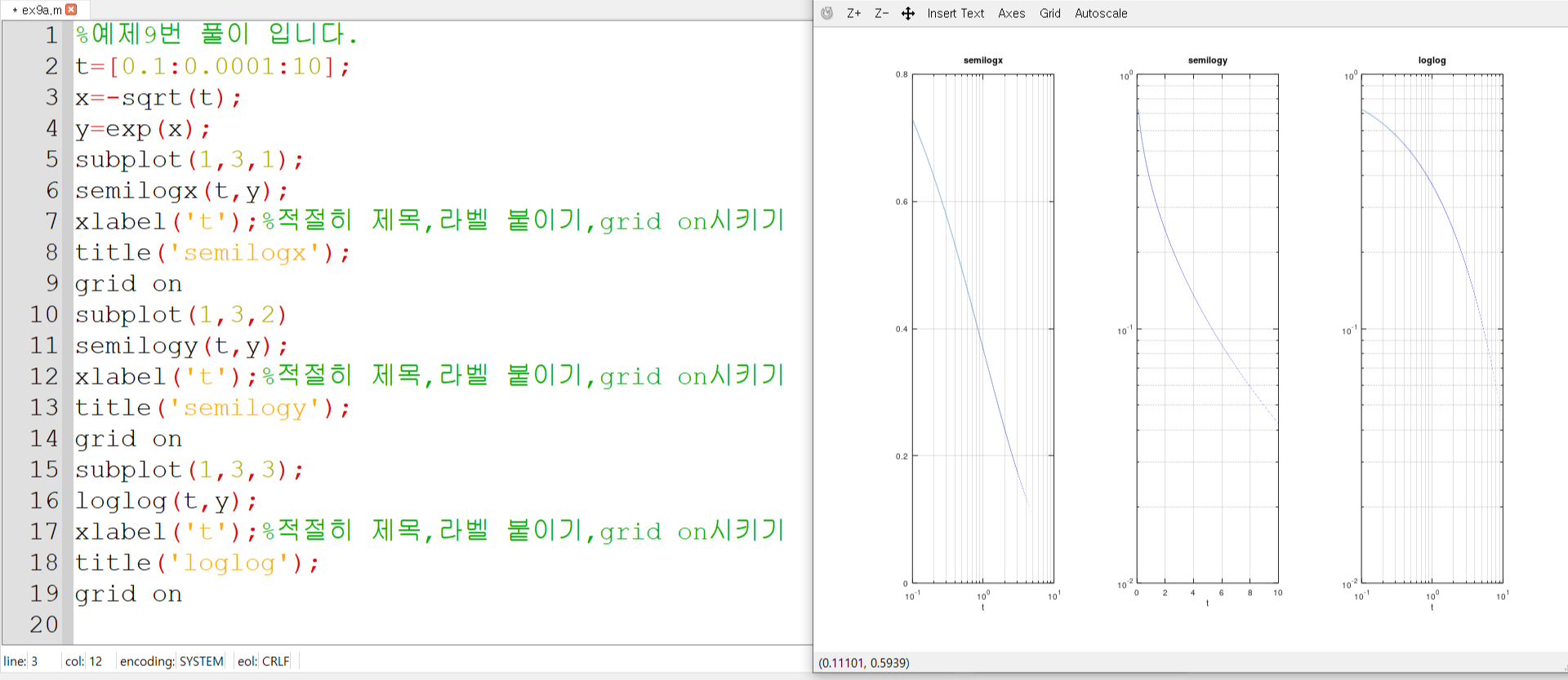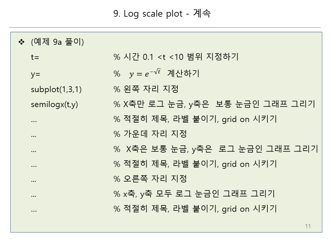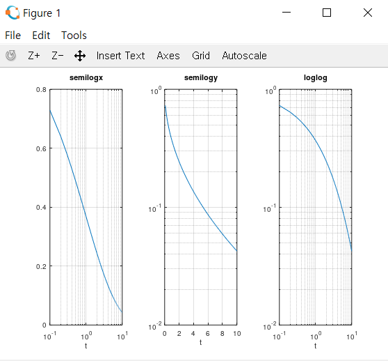 여기서 x값에 로그를 취하고 y값을 그대로 두려면 semilogx를 사용하고