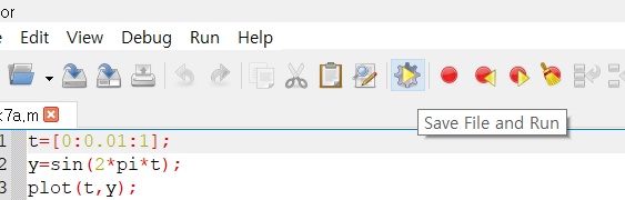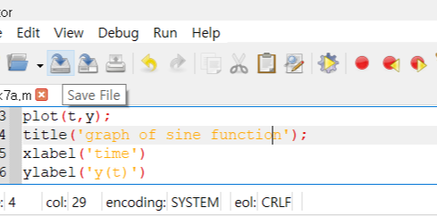 4,5,6 줄을 새로 입력한 뒤 Save File로고를 클릭해야 기존에 저장했던 m파일에 추가로 저장이 되어 4,5,6번째 줄까지 실행됩니다.