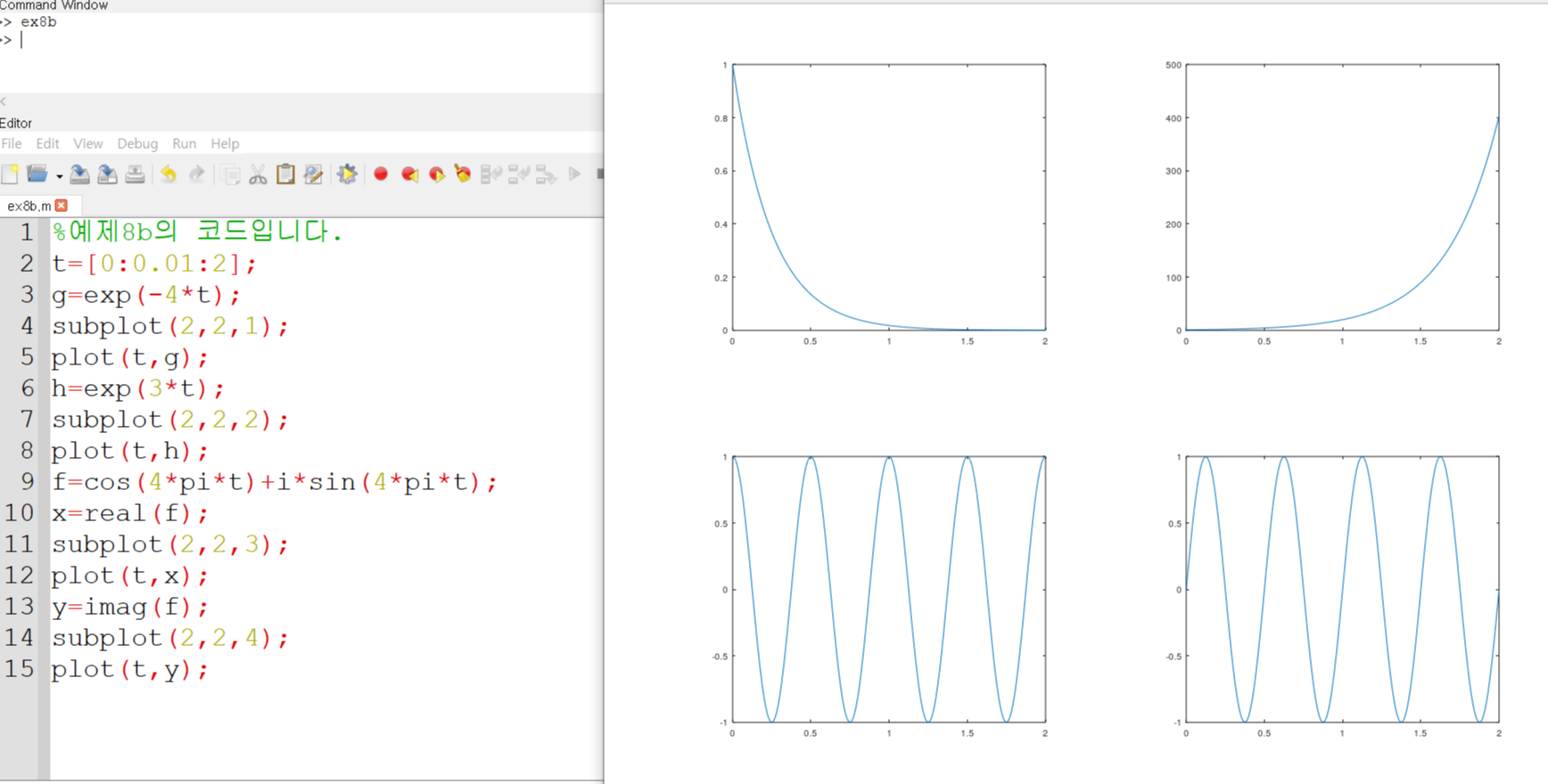 만드는 방법을 알게된후로 부터 m파일을 만들어서 실행시키는 것에 익숙해지는 게 좋을 것입니다.