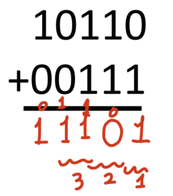 1+1 이 나왔을 때는 다음 자릿수에 1을 올려주고 (carry 해주고) 그 자릿수에 0을 작성해주어야 합니다