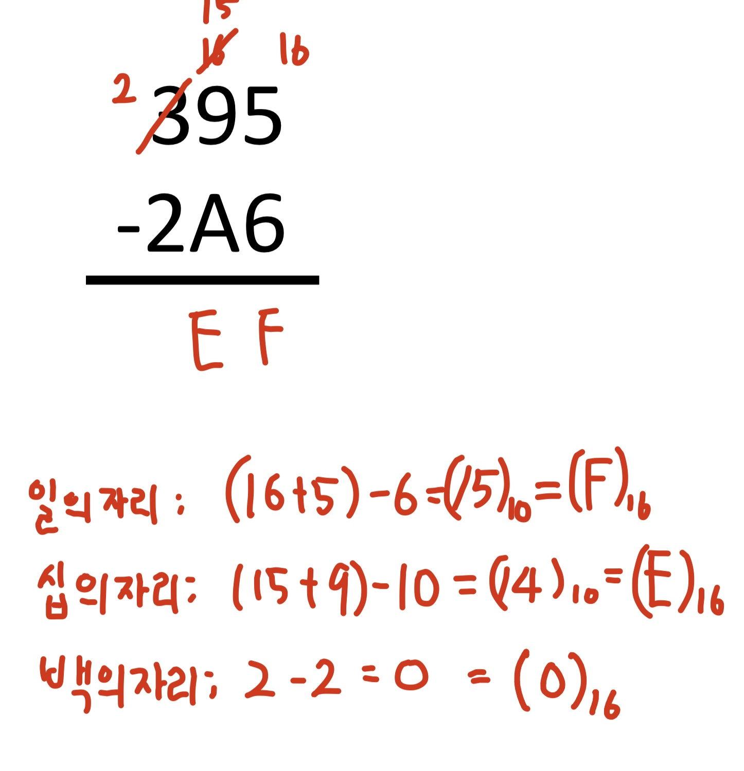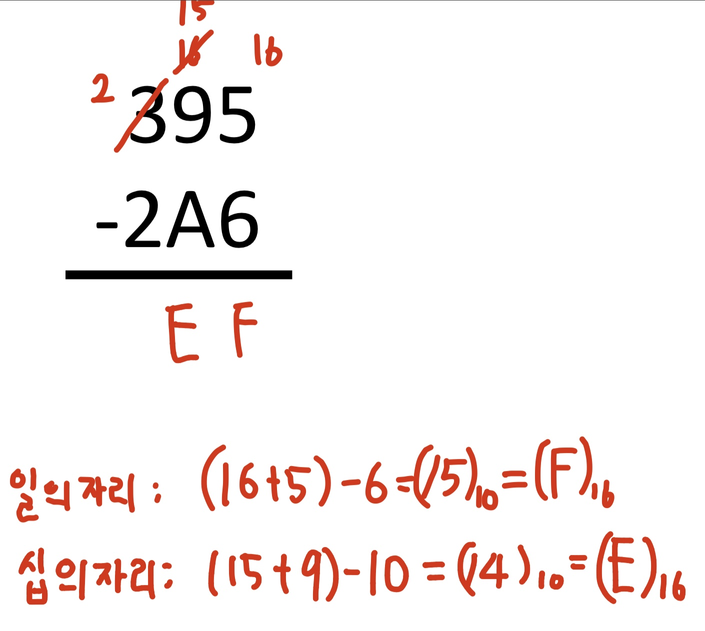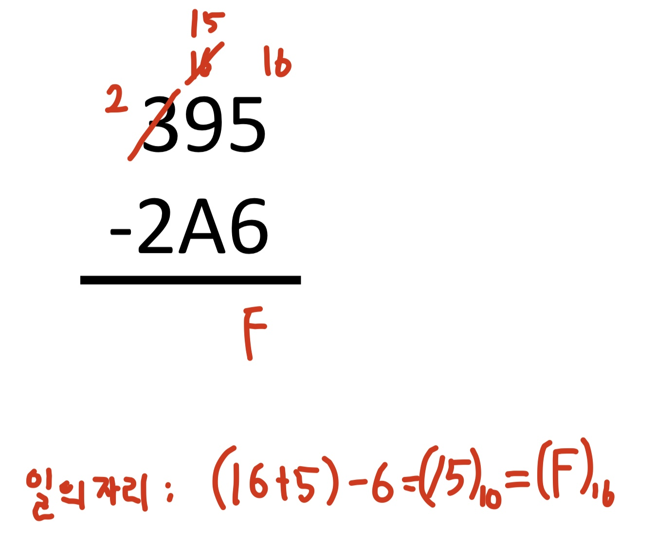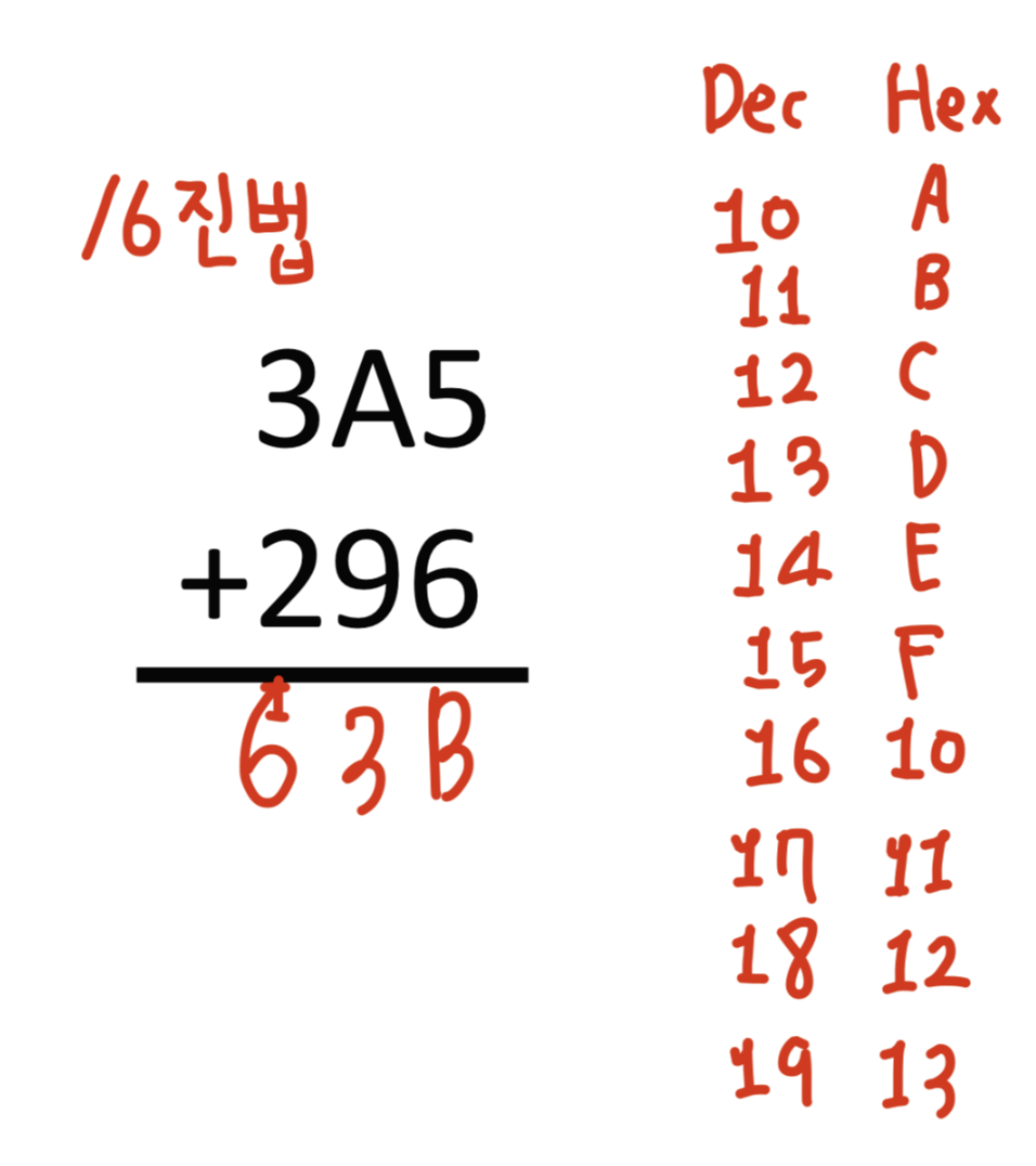 그리고 최대 숫자인 F를 넘지 않았으므로 십의 자리에는 숫자가 올라가지 않습니다.(Carry가 없습니다.)