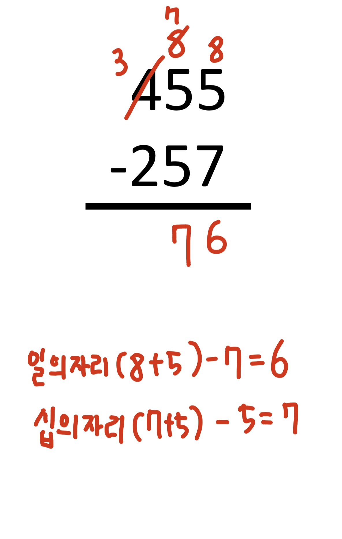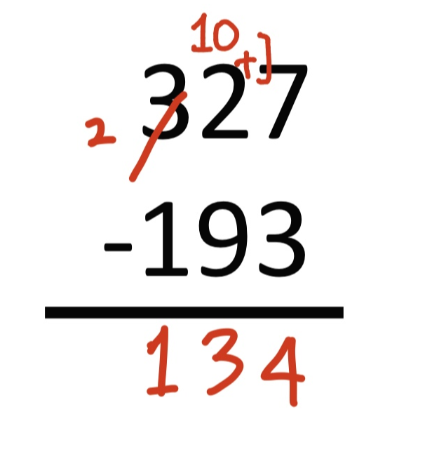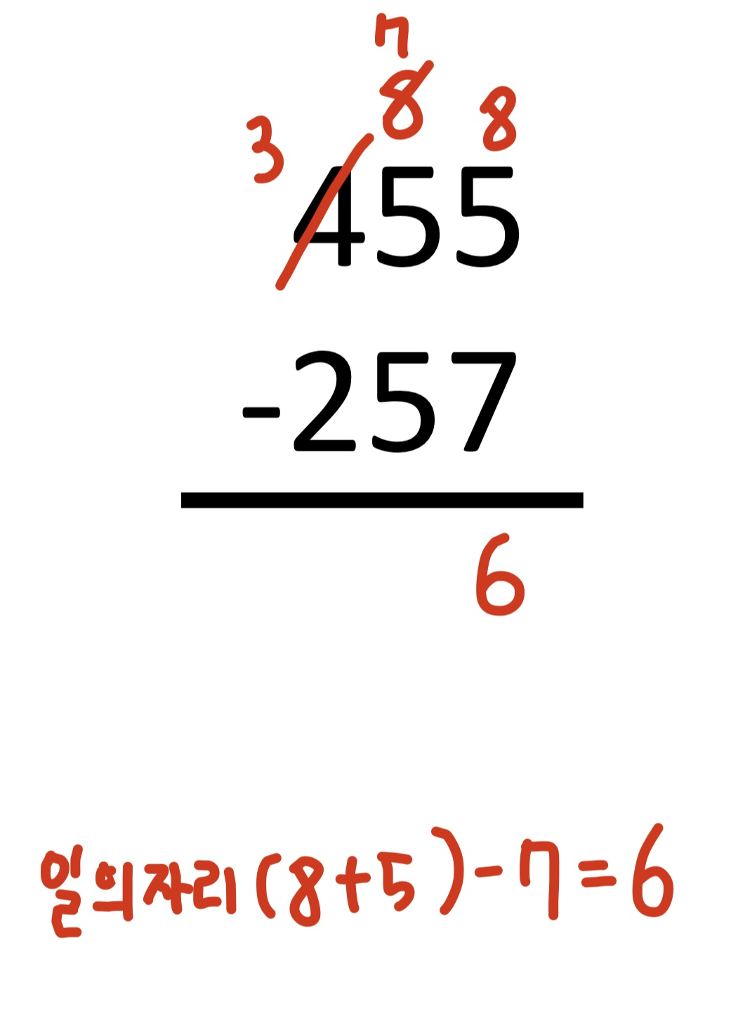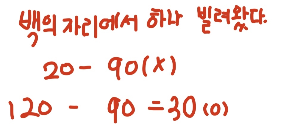 borrow가 생기면 십의 자리 위에는 2를 써줍니다.