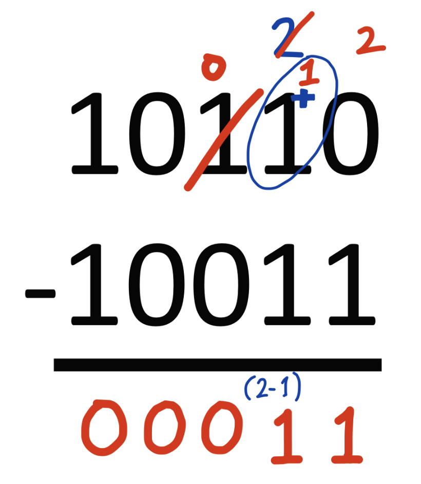 예를 들어 십진수에서 뺄셈을 할 때