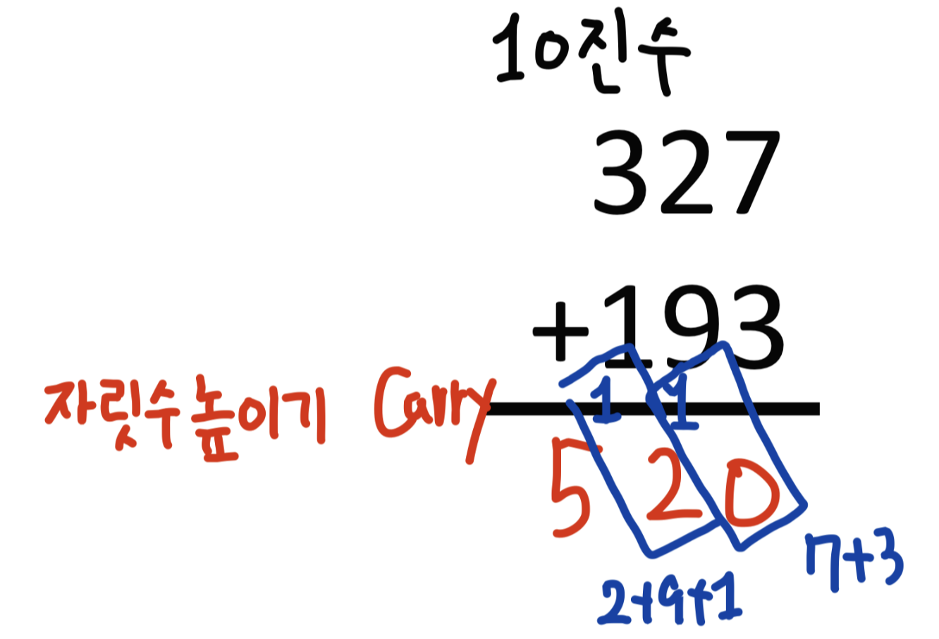 위와 같이 자릿수를 높이는 것을 Carry라고 합니다.