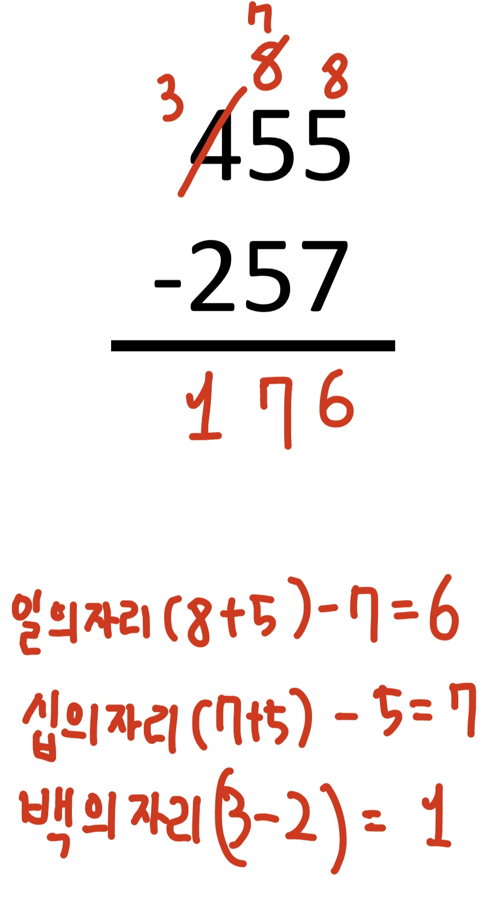 백의 자리~ MSB까지는 borrow 없이 간단하게 계산해주면 됩니다.
