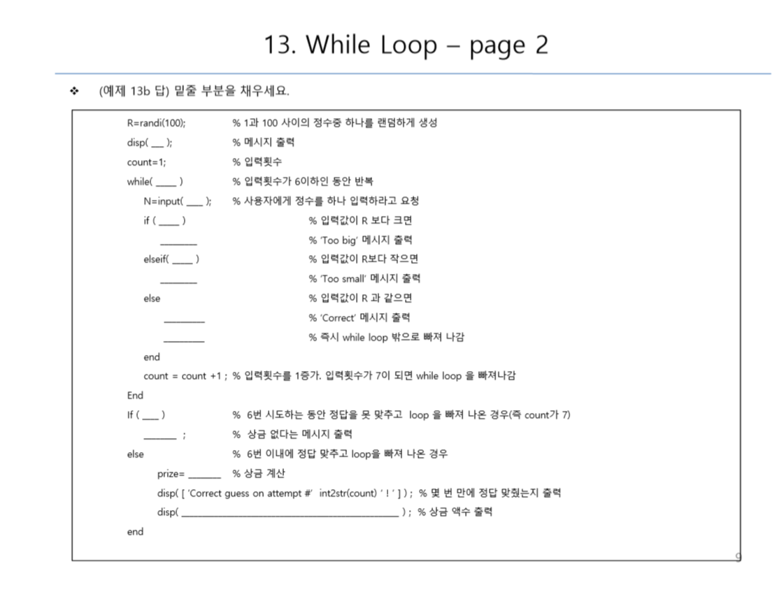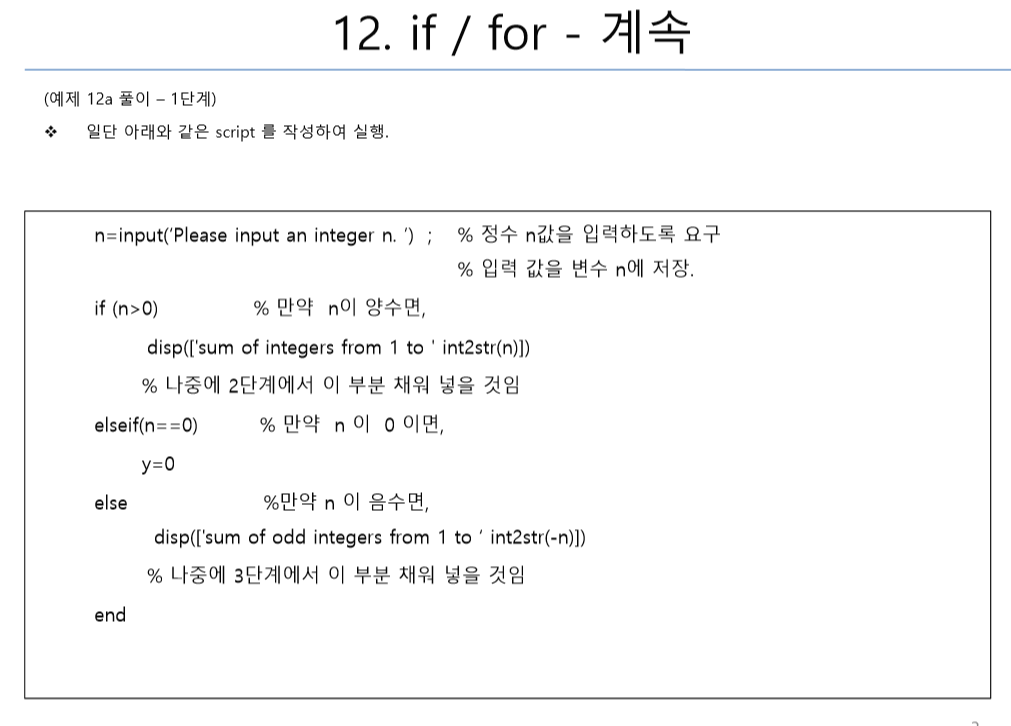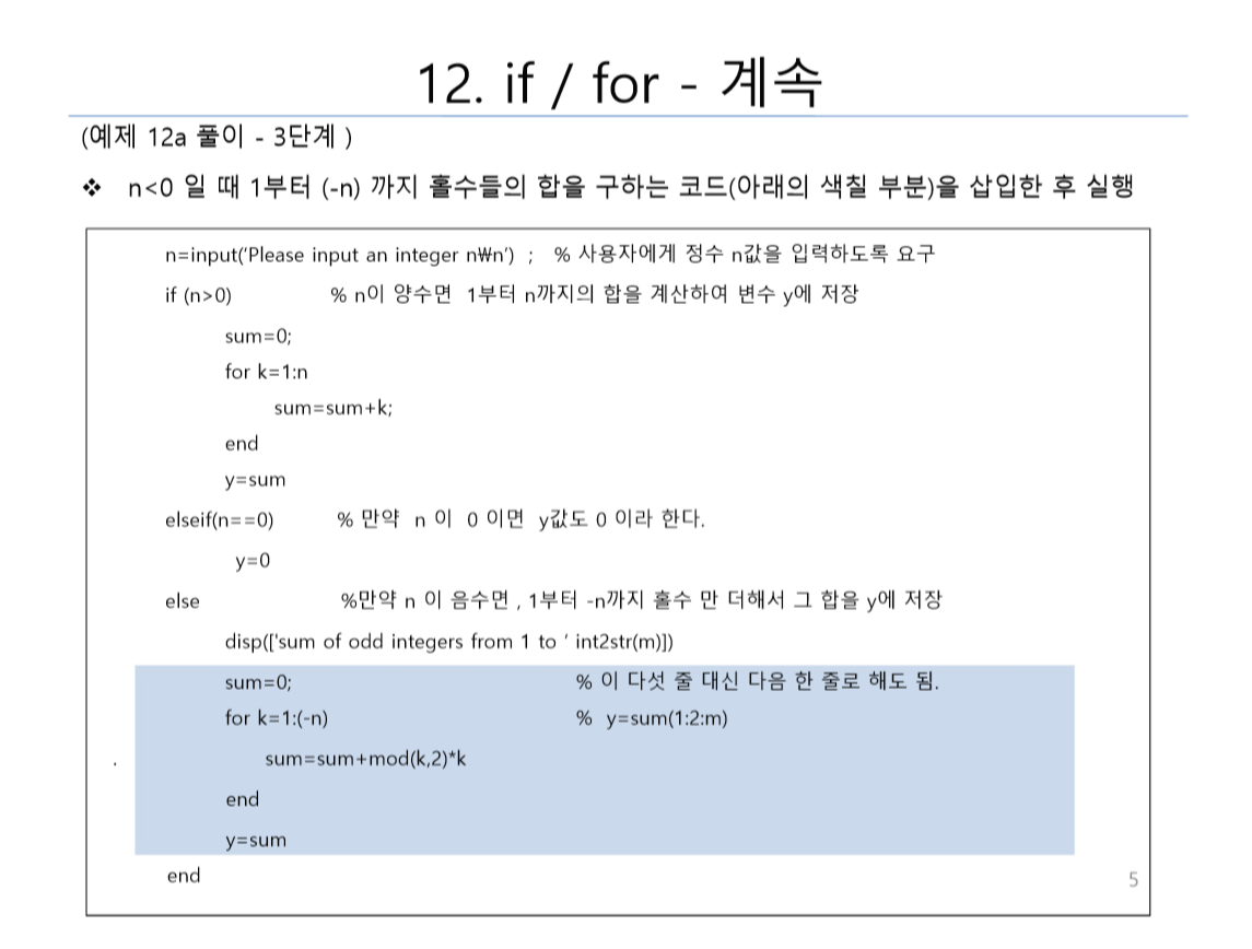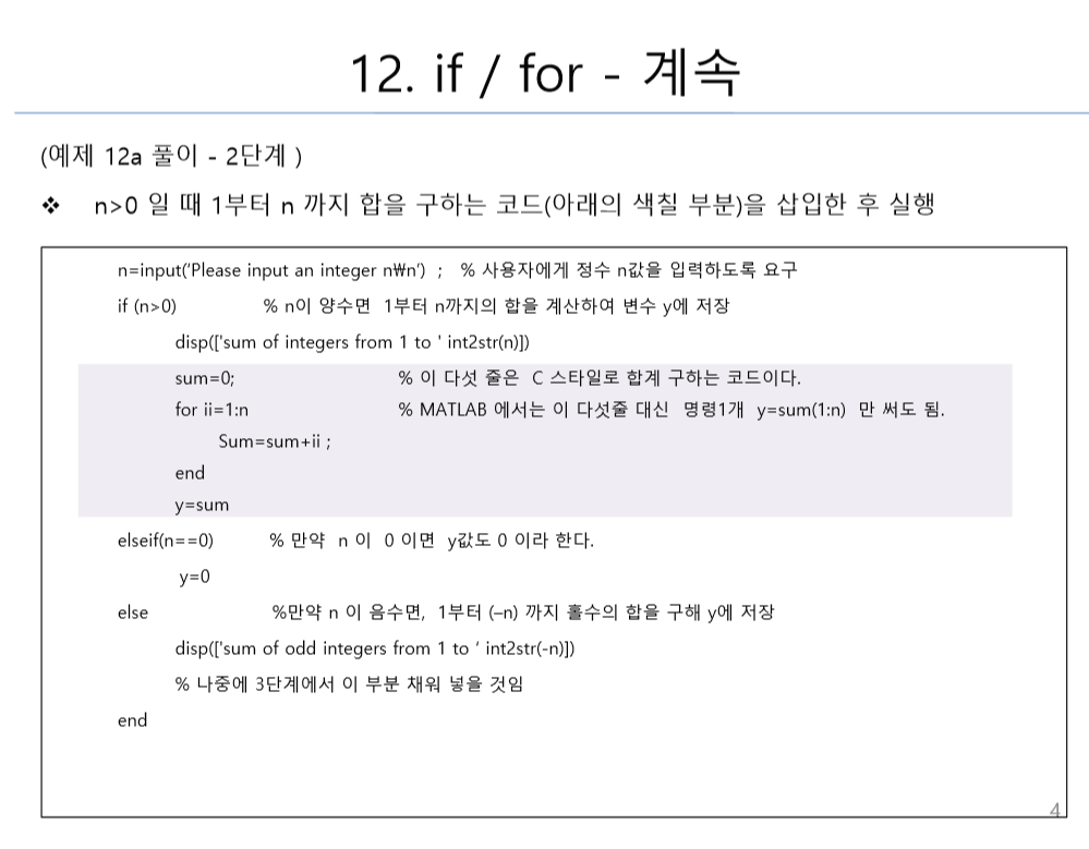 for ii=1:n %변수ii는 1부터 n까지 1씩 증가한다.