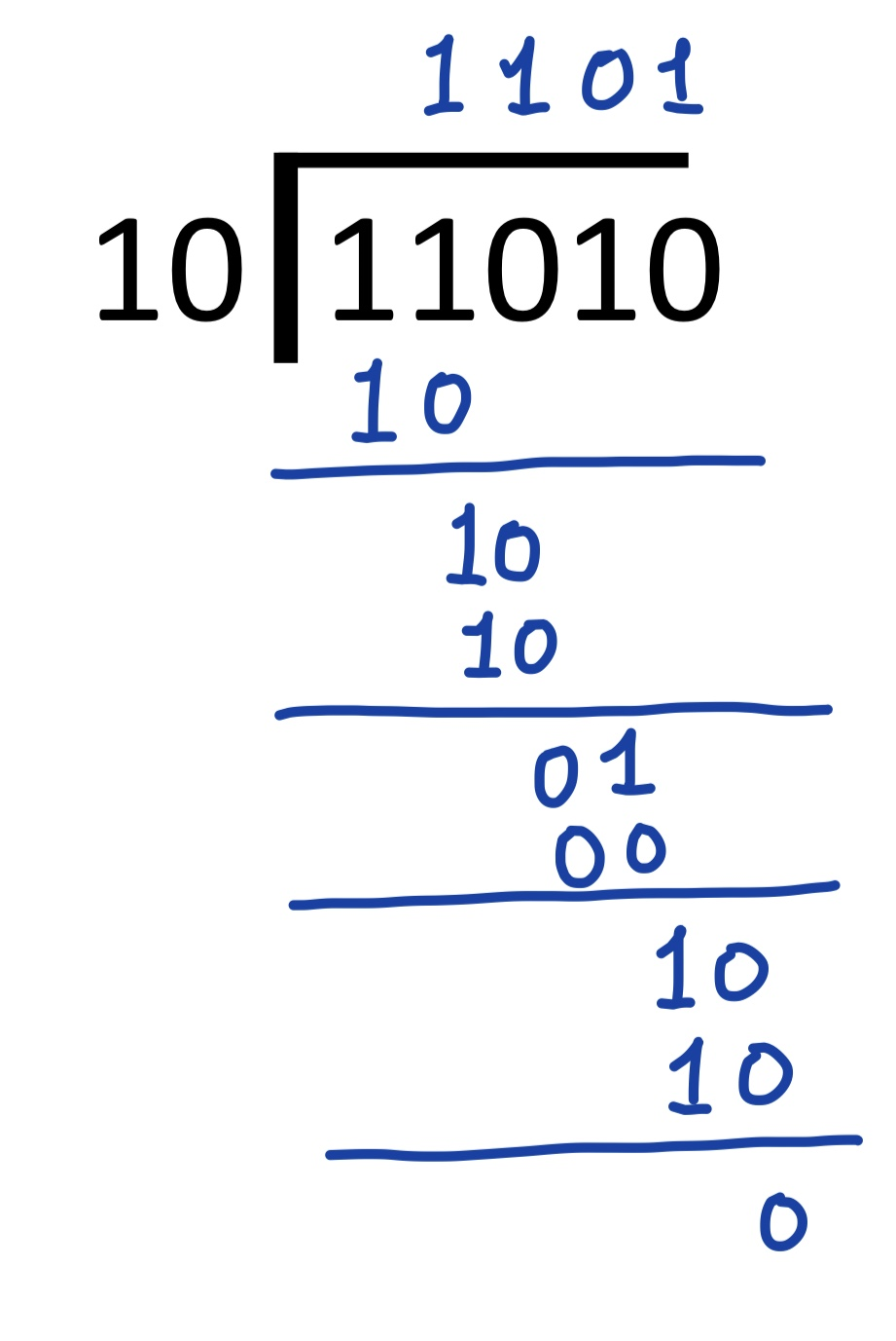 알고 있는 대로 십진법의 나눗셈을 한다고 생각하고 나눗셈을 해봅니다.