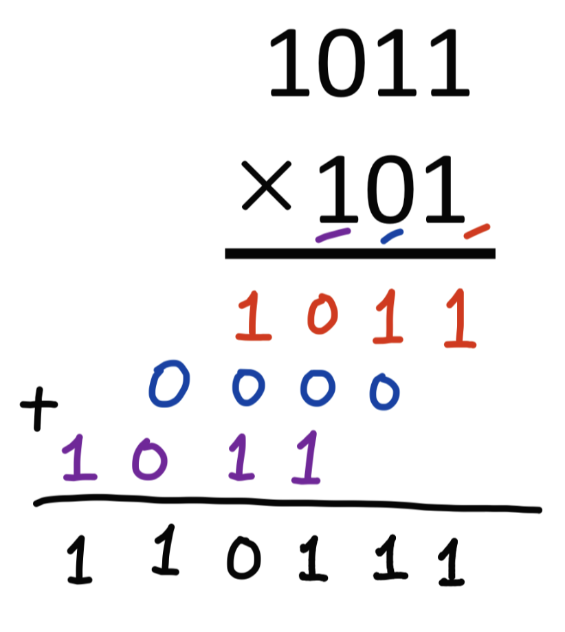 이진법에서는 숫자가 1,0만 존재하므로 어떤 수에 1을 곱 할 경우 그대로 나오거나