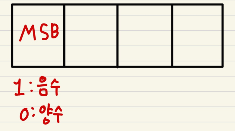아래와 같이 MSB의 bit가 1이면 음수, 0이면 양수를 나타냅니다.
