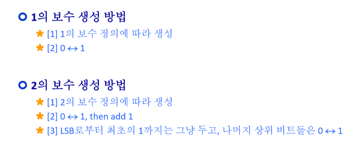 위 테이블에서 1의 보수 부분을 스스로 채워보기 바랍니다.