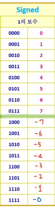 1의 보수 사용시스템에서는 양수와 음수를 표기할 수 있게 되었다.
