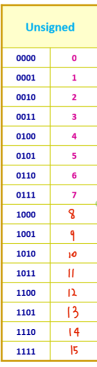 4Bit를 Unsignednumber로 썼다면 표현 가능한 수는 0~15까지 입니다.